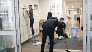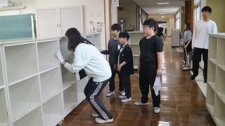 今日は明日の入学式の準備のために、新5年生と新6年生が学校に登校しました。