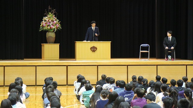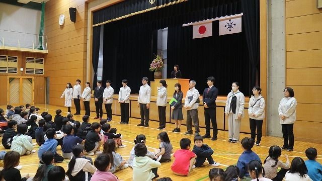 新しくさくら小学校に赴任した先生方を迎える赴任式を行いました。