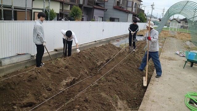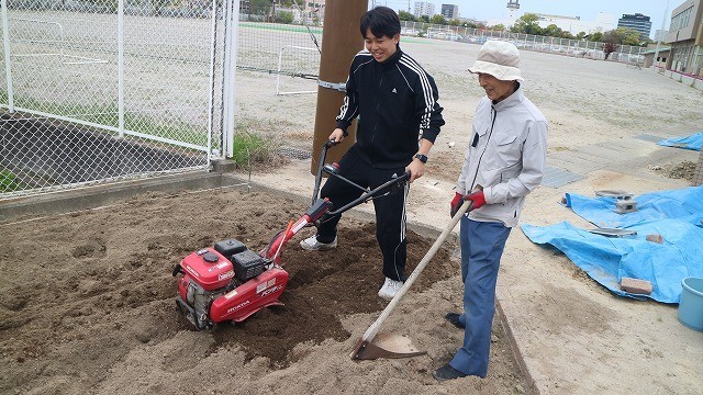 新年度の準備として、用務員の方に教えていただきながら教材園の畑を耕しました。
