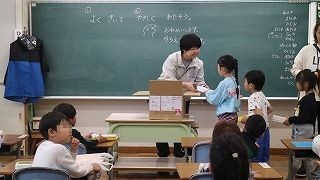 1時間目は「あつめもの」と「おどうぐばこ」の勉強です。みんながもってきた粘土を先生が集めます。