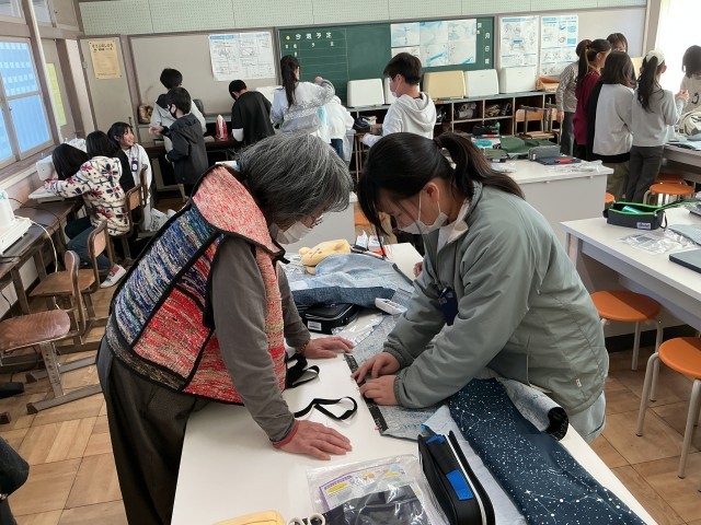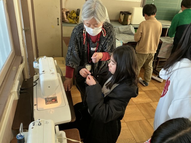 岩滑応援隊の方々が、5年生家庭科 ミシンの学習でお手伝いに来てくださいました。