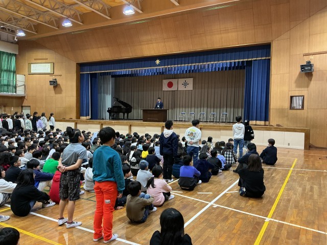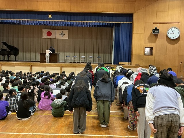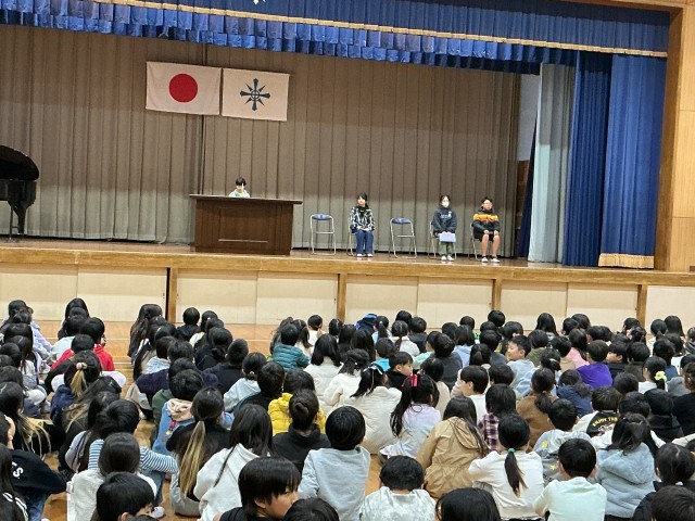 式辞で、1年間支えてくださった家族の方に「ありがとう」と言葉をそえて修了証を見せるよう子どもたちに伝えました。