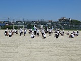 5月24日は、ふれあい運動会です。なかよし団(縦割りのグループ)の10団が赤白に分かれて戦います。1、6年生は、玉入れです。1年生と6年生が協力して取り組むルールになっています。6年生が、1年生をフォローする姿がたくさん見られました。