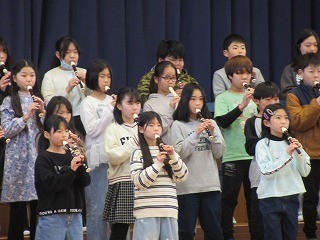 5年 音楽会リハーサル 公開日 2026/02/02 更新日 2026/02/02 5年 いよいよ今週末は音楽会です。リコーダーの演奏と合唱を全校に披露しました。息の合ったリコーダー演奏に、曲の盛り上がりを意識した合唱に仕上がっていました。残り数日、心を一つにして最高の演奏を目指します。