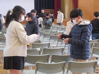 6年生は、大放課から椅子を準備しました。指示をよく聞いてテキパキと動いていました。