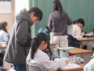 5年 算数 公開日 2026/02/20 更新日 2026/02/20 5年 5年生の算数では、復習の問題を解いていました。友達に分かりやすく説明しようと工夫する姿や、仲間のアドバイスを真剣に聞く姿が見られ、クラス全体で高め合いながら1年間の締めくくりをしていました。