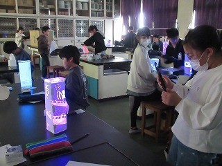 5年 図工 公開日 2026/02/26 更新日 2026/02/26 5年 5年生の図工の時間は、理科室がまるで美術館のような幻想的な雰囲気に包まれました。今回挑戦したのは、光の性質を活かしたアート作品です。暗闇の中で光を灯すと、子どもたちが丁寧に切りぬいた細かな模様が、鮮やかな光となってパッと浮き上がりました。