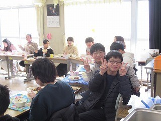 今日は、6年生の卒業をお祝いするお祝い給食の日でした。これまでお世話になった先生方を教室にお招きし、一緒に給食を楽しみました。学級ごとに工夫を凝らした出し物があり、大いに盛り上がりました。先生方との絆を深める、笑顔あふれる素敵な時間となりました。給食は、ハッシュドビーフやココアあげぱんなど、みんなが大好きな特別メニューでした!美味しい食事を囲みながら、小学校生活の思い出話に花を咲かせました。