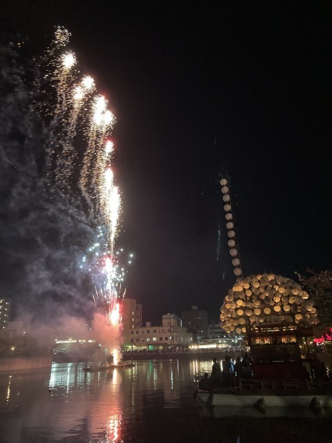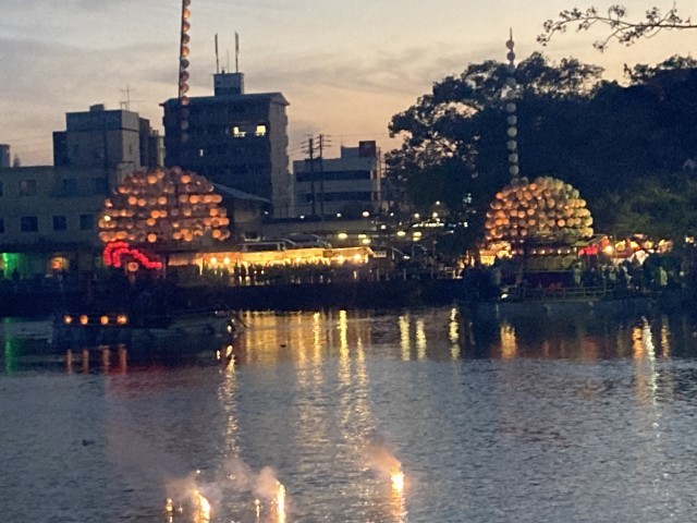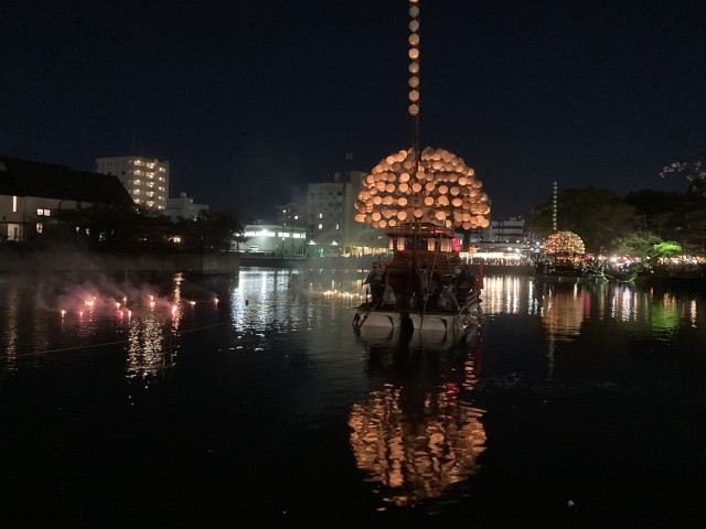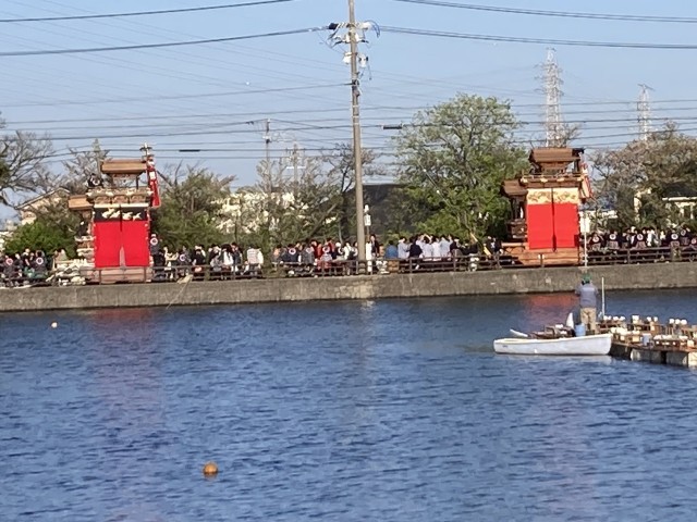 4月11日(土)、12日(日)に、上半田地区の住吉神社の大祭、「ちんとろ祭り」が盛大に行われました。晴天に恵まれ、地域の多くの方々が参加され、活気に満ちていました。北と南の2輌の山車も繰り出し、祭礼も厳粛に行われました。夜は、宮池に2艘のちんとろ舟が悠々と浮かび、お囃子が披露され、優雅な祭りでした。最後は花火も打ち上げられ、喚声があがっていました。