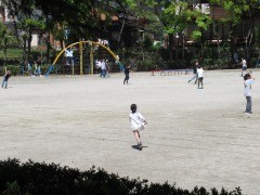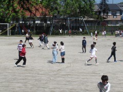 さわやかな日になりました。大放課には子どもたちが運動場に出て、元気よく遊び回っています。遊具で遊ぶ子、鬼ごっこをして遊ぶ子、ドッジボールをして遊ぶ子、さまざまです。元気いっぱい、笑顔いっぱいです。