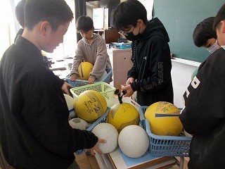 1年間の振り返りをしたり、普段使っている部屋の掃除をしたり、各クラスのボールに空気を入れたりしていました。