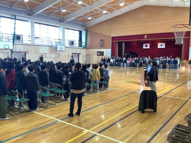 2週間後に迫った卒業式に向けて、4年生から6年生までが集まって、練習しました。