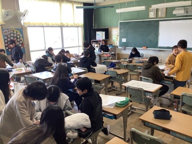 1組は図工の作品バッグ作りをしていました。