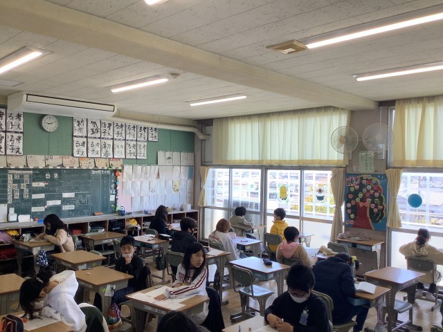 2組はテストが終わった児童から、それぞれの学習に取り組んでいました。