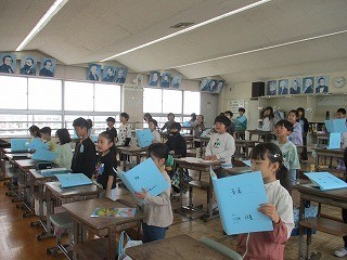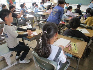 2組は、「音読ファイル」の表紙作りを行っていました。