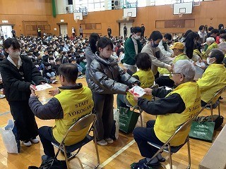 Realizamos uma "Festa de Agradecimento" para expressar nossa gratidão à comunidade local pelo apoio contínuo.O presidente do grêmio estudantil expressou sua gratidão em nome dos alunos e presenteou-os com cartas dos estudantes e prímulas.Todos os alunos cantaram "Vamos cantar juntos - Que as vozes da canção e da felicidade transbordem" e a atmosfera se encheu de alegria.Por fim, um morador local expressou sua gratidão, dizendo: "As saudações de todos me dão energia.Contamos com o apoio contínuo de todos na comunidade."