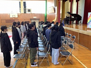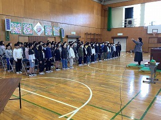 卒業式に向けて全体を通した総練習を行いました。合同練習よりもさらに熱のこもった練習でした。