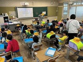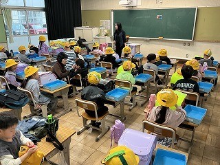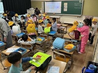 昨日よりも帰りの支度が早くなりました。空っぽのお道具箱、ランドセルの上には黄色い帽子…