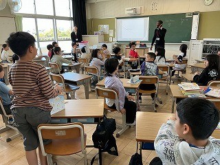 外国語活動では、ALTの先生と一緒に学習しました。好きな○○について質問したり答えたりしました。