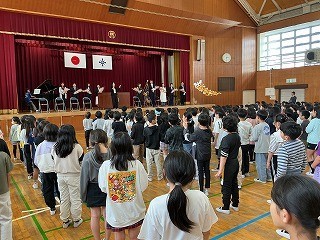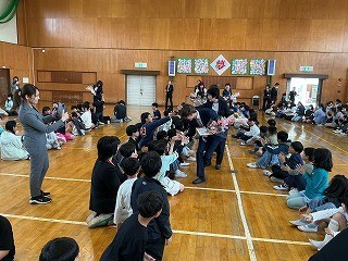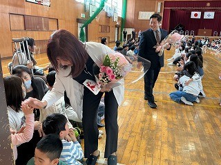 今日は転退職された9名の先生方をお迎えし、離任式を行いました。新しい学年でがんばっている子どもたちに、先生方から励ましの言葉をただきました。