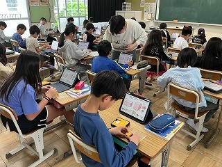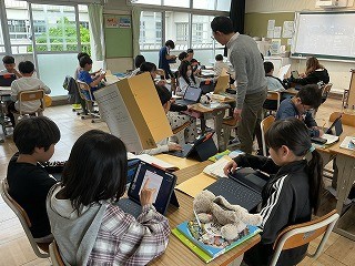 国語「銀色の裏地」を読んでいきます。今日は銀色の裏地って何のことなのかを考えました。発表者を見て話が聞けています。