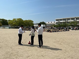 高学年が素早く静かに整列し、低学年の手本となってくれました。