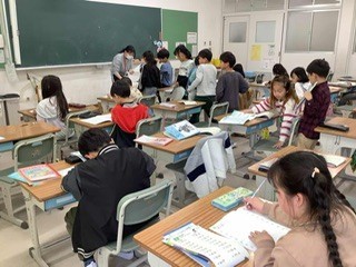 早速、算数や国語の学習が始まっています。新しい教科書と新しい学習。まずは、復習問題やおもしろいパズル的な問題。言葉集めや漢字ビンゴ。みんな楽しそうです。