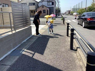 1年生 交通教室 雨の日を想定して、傘をさした歩行、そして傘を閉じた状態で持った歩行の練習をしました。明日から、保護者のお迎え当番はありません。一人一人が自分や周りの人の安全のために気をつけてほしいです。