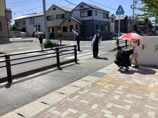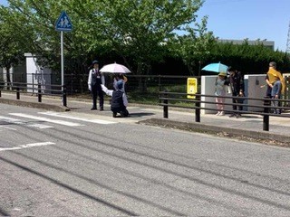 2年生 交通教室で傘を使った歩行練習をしました。左右確認、傘の差し方、持ち方など、普段の生活の中で生かしてほしいことばかりです。
