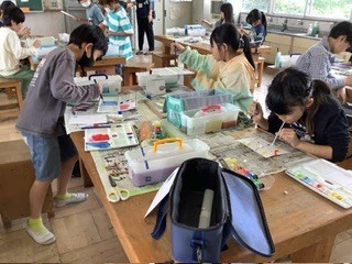今日の乙東っ子 その3 公開日 2025/04/25 更新日 2026/02/06 乙東っ子日記 4年生 図工 絵の具で模様作りをしました。ブラシを使ったり、ストローで吹いたり、水の量を変えたり・・・。素敵な模様ができていました。