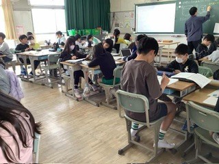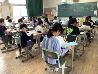 5年生 算数を自由進度学習で行っていました。クラスを解体して、一人で学習を進めたい人は1組に集まり、友達と相談したい人は2組に。先生と学習したい人は3組に分かれて学習しました。自分に合う方法が見つかるといいですね。