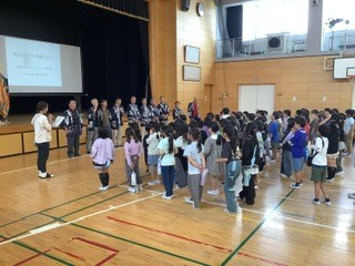今日の乙東っ子 3年生 その1 公開日 2025/06/10 更新日 2026/02/09 乙東っ子日記 3年生 伝統文化出張講座で、向山区神楽獅子保存会の皆さんが来てくださって、講座を開いてくださいました。今日は、太鼓、笛、花笠と着物の着付けを順番に見せていただき体験しました。次回の9月9日には、練習をして、10月に発表をします。 +6