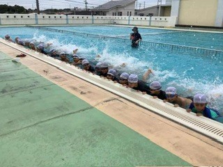 今日の乙東っ子 4年生 その2 公開日 2025/06/12 更新日 2026/02/09 乙東っ子日記 4年生 午後は水温も気温も上がってきて水泳の授業をしました。今年初めてなので、まずは浅いプールで始めました。早速、監視のお手伝いの保護者に来ていただきました。ありがとうございます。