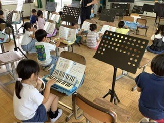 2年生 鍵盤ハーモニカの練習をしていました。指づかいにも注意して、かえるのうたを演奏していました。