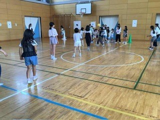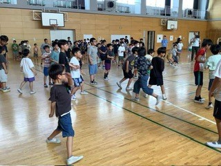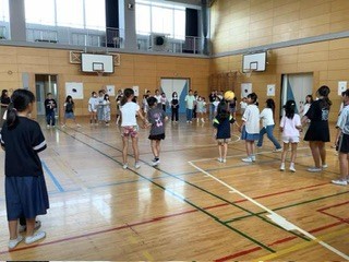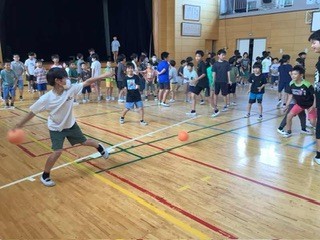 大放課 2年と5年ペアのドッジボール 体育館にエアコンが入って、涼しい中で思い切り体を動かし、楽しみました。