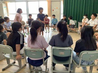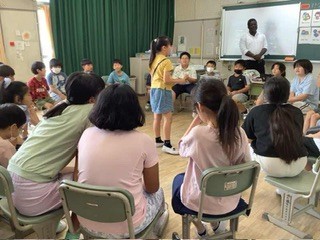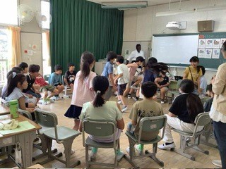 4年生 外国語 好きな時間を話すフレーズを学習しました。それを使って、ゲームをしていました。