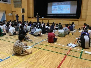 今日の乙東っ子 5年生 公開日 2025/07/10 更新日 2026/02/13 乙東っ子日記 5年生 総合的な学習で、防災をテーマにしています。今日は、消防署の方に講師をしていただきました。実際に、能登地震の支援で能登に行かれた方のお話を聞くことができました。これからの学習に活かします。