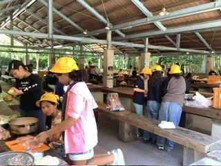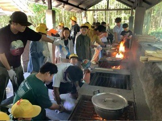 野外活動 その1 公開日 2025/07/21 更新日 2026/02/13 乙東っ子日記 予定通り、美浜自然の家に到着入所式でお話を聞きました。よく話が聞けました、と褒めていただきました。お昼ご飯のカレーを野外で作りました。かまどに火をつけることも初めてです。協力を発揮する場面ですね。 +7