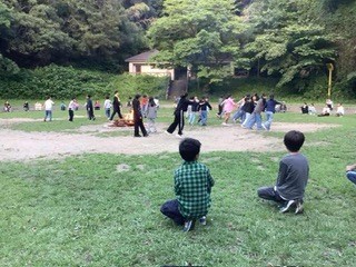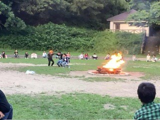 野外活動 その5 1組 公開日 2025/07/21 更新日 2026/02/13 乙東っ子日記 キャンプファイヤーです。火の神が登場して、協力の火、友情の火、元気の火をさずけられ、大きな火となりました。1組はダンスと爆弾ゲーム。みんなで楽しみました。