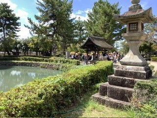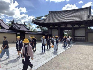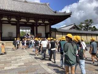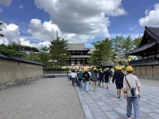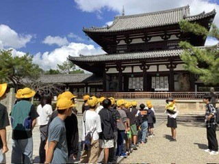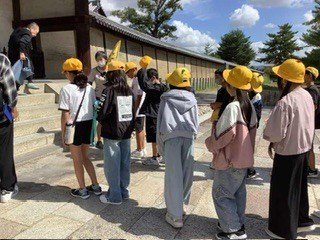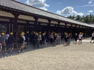 法隆寺の見学をして、お昼のカレーライスを食べました。お腹がすいていたので、みんなしっかり食べました。次は、奈良公園です。
