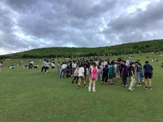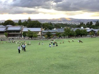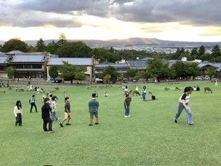 みんなで夕暮れ時の若草山に登りました。奈良の街が一望できました。