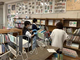 今日の乙東っ子 本の点検 公開日 2025/10/21 更新日 2026/02/19 乙東っ子日記 図書館サポーターの皆さんが、図書室の本の点検をしてくださっています。1年に1回、全ての本をチェックします。大変な作業ですが、サポーターの方がしてくださいます。ありがとうございます。