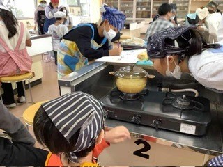 今日の乙東っ子 5年生 公開日 2025/10/31 更新日 2026/02/20 乙東っ子日記 5年生 家庭科 ご飯を鍋で炊きました。耐熱ガラスの鍋のため、沸騰してお米が踊っている様子が見えます。そして、いい香りもしてきます。みんなでコンロの周りで楽しみにご飯が炊けるのを待っています。 +2