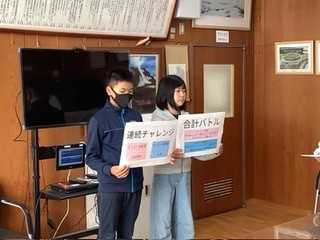 朝会 体育委員会から今年の短縄運動について説明がありました。今年は、自分で目標を立ててそれを目指して頑張ることに力を入れているようです。