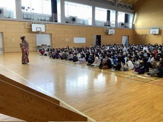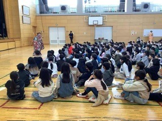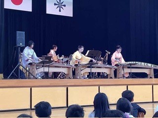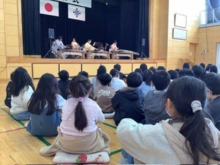 今日の乙東っ子 さくらこまち和楽団 公開日 2025/11/26 更新日 2026/02/20 乙東っ子日記 文化庁の事業「舞台芸術等総合支援事業」で、今年はさくらこまち和楽団に来ていただきました。琴、三味線、鼓、尺八等の和楽器を使った演奏を聴いたり、楽器の説明を聞いたりしました。演奏会の前には、4年生が、和楽器の体験をして、さくらこまちさんと一緒に演奏をしました。和楽器にも興味をもつきっかけになればいいと思います。 +1
