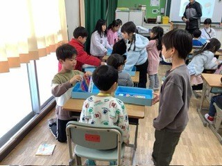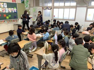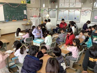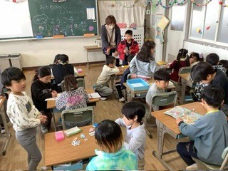 来年度入学してくる子どもたちのための入学説明会が行われました。新1年生のために、現在の1年生が準備した発表をしたり、ペアになって一緒に遊んだりしていました。