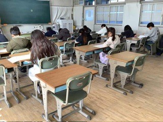 PTA主催の漢字検定が行われました。乙川小学校と合同開催です。みんな合格目指して頑張っていました。中学生や保護者も挑戦していました。