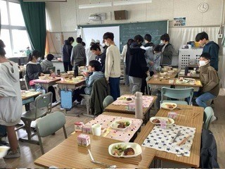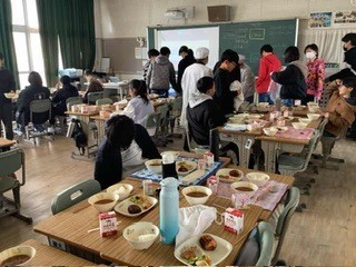 6年生のお祝い給食でした。ビーフシチューやココア揚げパン、ストロベリーケーキなど、特別メニューの給食でした。とったも美味しかったです。小学校での給食もあとわずかです。
