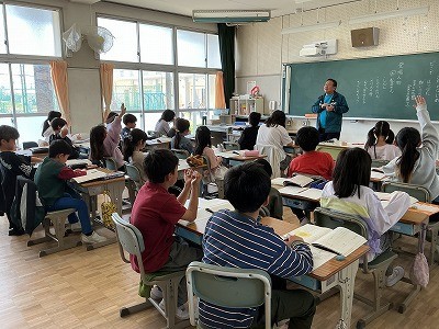 4-3 国語「白いぼうし」 公開日 2026/04/14 更新日 2026/04/14 乙東っ子日記 登場人物について確認したあと、先生からの「モンシロチョウはしゃべっていたか」という問いかけに、楽しい雰囲気に包まれました。先生が「理由とともに考えよう」と続けると、自分のことばで一生懸命考えたり、周りの人と考えを共有したりしていました。