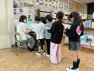 2-1 本を借りました 公開日 2026/04/15 更新日 2026/04/15 乙東っ子日記 とても静かに本を選び、列に並んで、担任の先生に貸し出しの手続きをしてもらっていました。とても立派でした。借りた本を読むのが楽しみですね。たくさんの本を読んでくださいね。